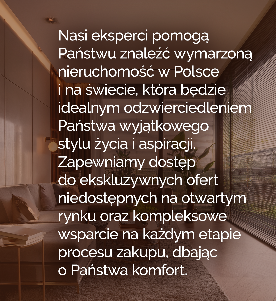 Klient otrzymuje spersonalizowaną obsługę, w której dogłębnie analizujemy jego preferencje i potrzeby, aby znaleźć idealną nieruchomość